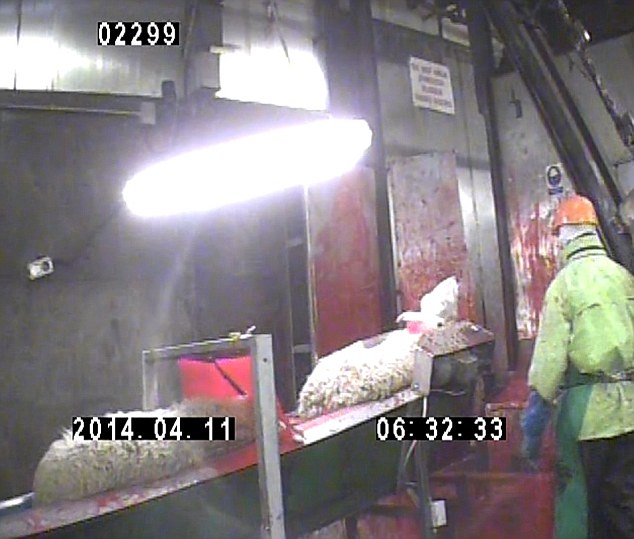 В прошлом месяце, одному из защитников животных удалось сделать эти снимки внутри халяльной скотобойни Banham, Norfolk. Он стал свидетелем как более 100 овец, мучились и дергались в агонии после ритуального убийства.