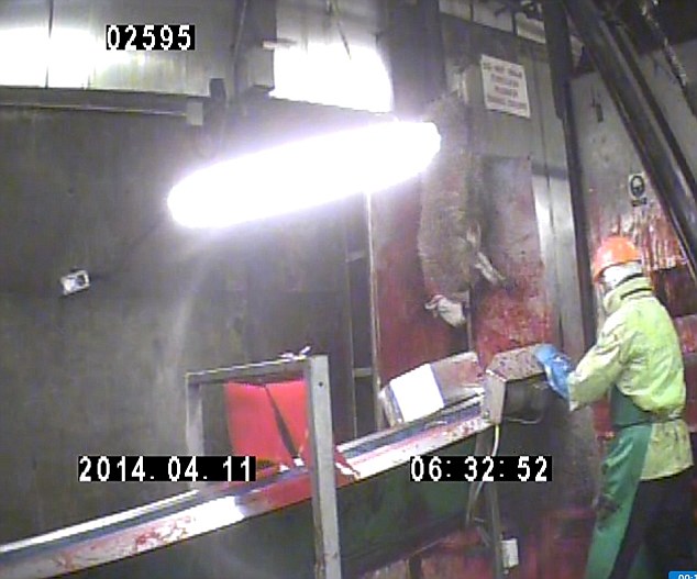 В прошлом месяце, одному из защитников животных удалось сделать эти снимки внутри халяльной скотобойни Banham, Norfolk. Он стал свидетелем как более 100 овец, мучились и дергались в агонии после ритуального убийства.