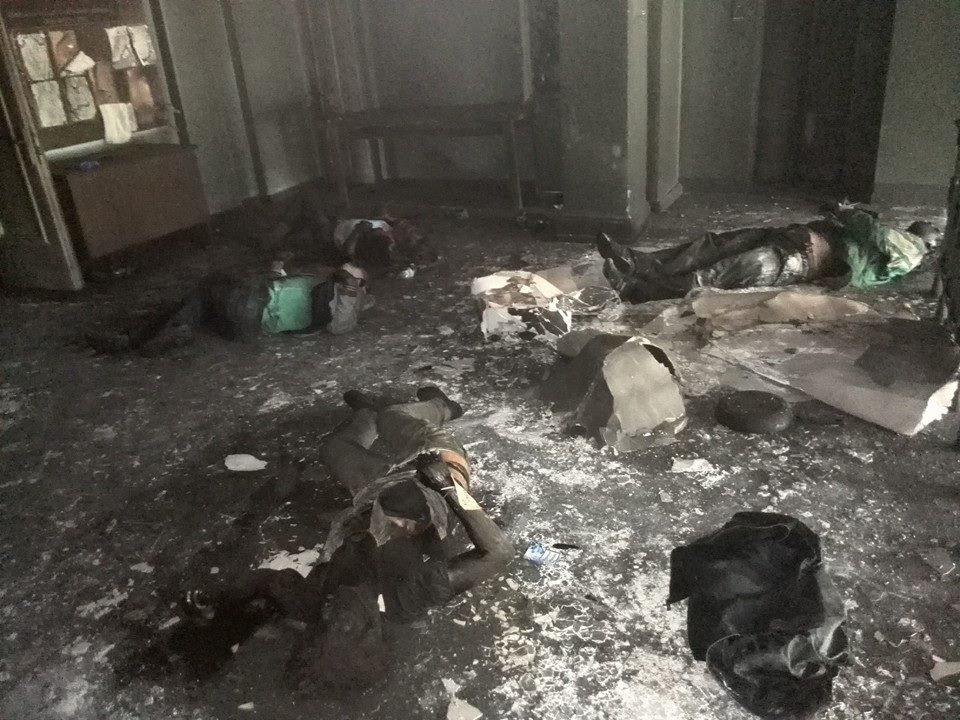 — Это факт, есть даже в интернете фотографии беременной женщины, задушенной на столе. Если обратить внимание на позы трупов, которые там находятся, или на состояние тел, четко видны пулевые отверстия в голове и лужи крови под головой. Почему-то у людей в большинстве своем обгоревшая верхняя часть туловища — голова и плечи, и люди, находившиеся внутри, они просто обливали после того, как стреляли в людей, тела бензином и поджигали для того, чтобы скрыть следы преступлений.
