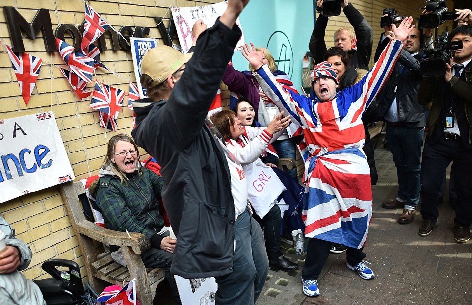 Те несколько, не вполне адекватных фанов с флагами, которых полиция почему то не гнала подальше с глаз, хоть и попрыгали и покричали, когда объявили о рождении принцессы, выглядели не натурально. Плохо поставленная массовка, что ли.
