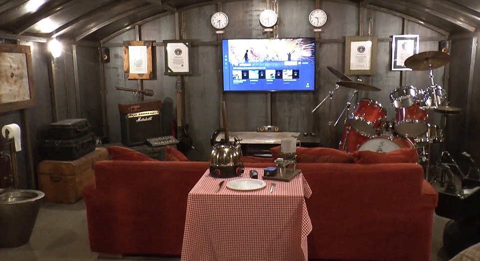 Пока конец света не наступил, британец любит уединяться под землей после работы. Для этого в бункере установлен широкоэкранный плазменный телевизор, аудио система, множество игровых приставок, производства конца 90-х годов и до наших дней, кабельное телевидение и конечно ударная установка.