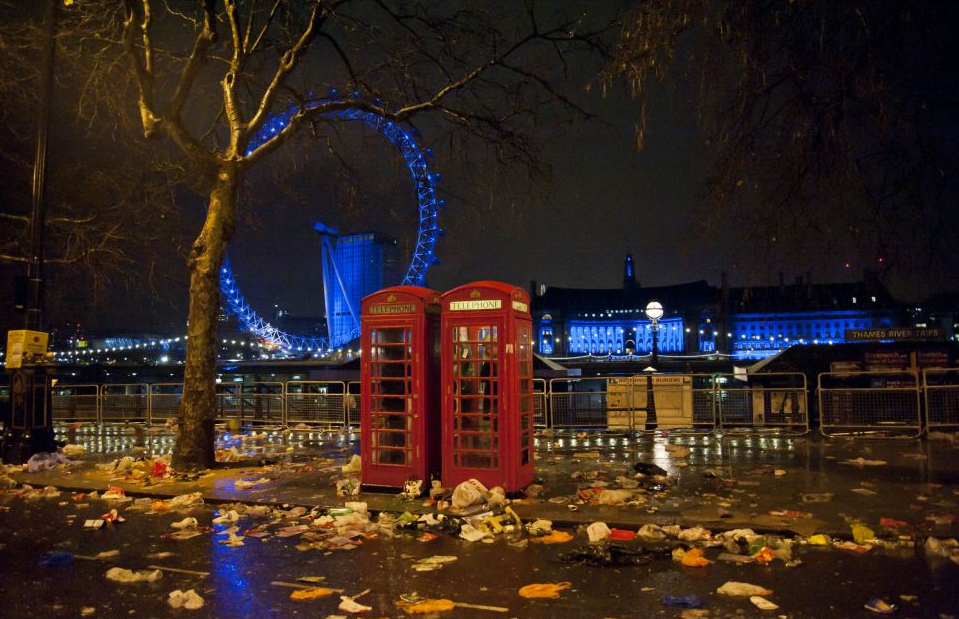 Четверть миллиона человек? заполнивших берега Темзы в ночь на вторник чтобы встретить Новый 2014 год, оставили после себя горы мусора.