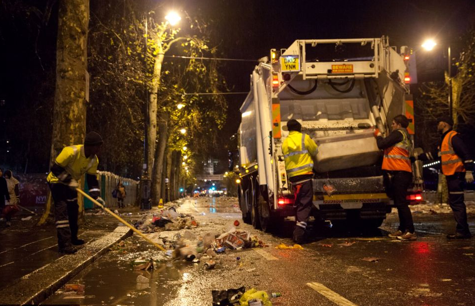 Как только пиротехническое зрелище закончилось, Вестминстерский коунсил направил 119 работников, которые до утра расчищали место празднеств от пустых бутылок, коробок их под конфет и все возможного мусора.