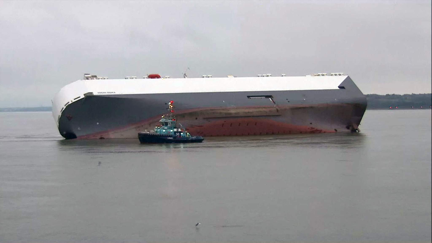 Автовоз, приписанный к порту Сингапур, накренился под углом и существует опасность, что судно может перевернуться полностью. Спасательные службы в настоящее время пытаются оценить устойчивость судна.