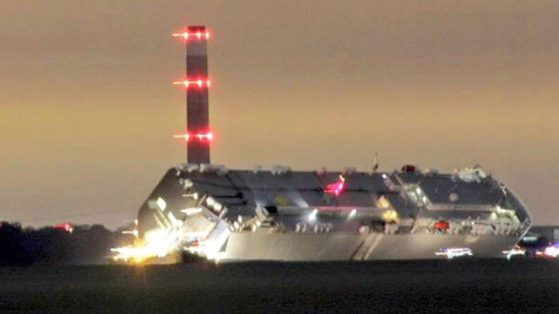 По состоянию на 9:20 утра субботы судно, водоизмещением в 51 000 тонну, накренилось под уклоном в 45 градусов.