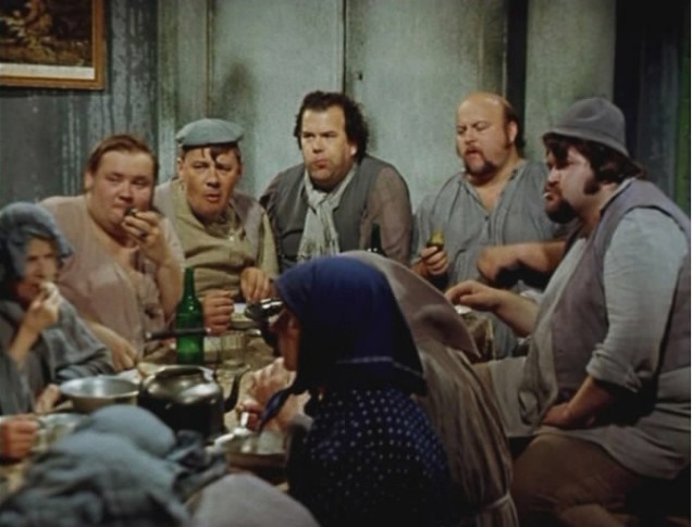 Сцена из романа Ильфа и Петрова “Двенадцать стульев”. Сироты, родственники директора приюта, сожрали всю капусту и оставили бабушек голодными.