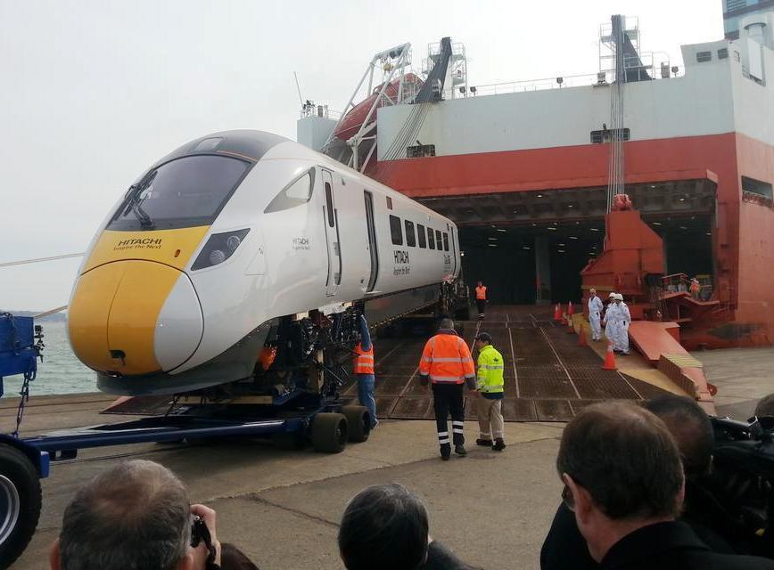 Тестовую версию гибридных поездов Hitachi Class 800 на днях разгружали в английском порту Саутгемптон. Всего японцы планируют поставить в Великобританию в ближайшие несколько лет 122 подвижных состава.