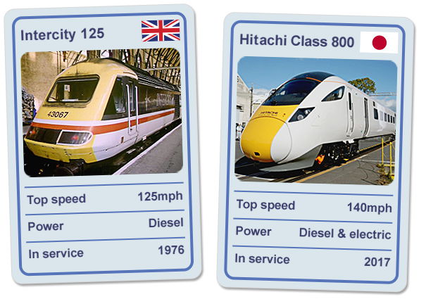Hitachi Class 800 более скоростные. Они развивают скорость до 225 км в час. У них более мягкий и бесшумный ход и они более вместительные. Поезд из девяти вагонов сможет перевозить до 630 пассажиров. Новые поезда в Великобритании будут оборудованы более комфортабельными и вместительными туалетами и оснащены необходимыми устройствами для перевозки пассажиров с ограниченными физическими возможностями.