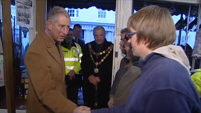 Принц Чарльз посетил затопленные деревни в Somerset.