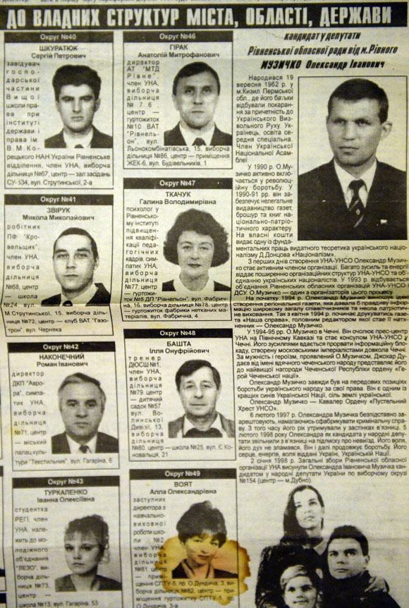 По словам родителей Музычко, Сашко часто бывал в командировках. Шесть лет он был главным редактором националистической газеты «Наша справа». В выпуске, посвященном выборам, за 1998-й год, Сашко еще молодой, в костюме и галстуке, баллотируется в депутаты областной рады. В своей биографии он пишет, что в революционную борьбу включился в 1990-м, когда «занялся нелегальным изданием газет, брошюр и книг национально-патриотического характера». В думу он тогда не прошел.