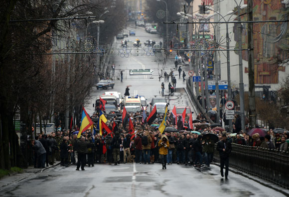 В Ровенской области не была ограблена ни одна воинская часть и не пострадало ни одно административное здание (во Львове таких было восемь), по всему городу были развешаны объявления с мобильным телефоном, куда звонить в случае ЧП. Первый звонок был в «Правый сектор», а потом уже в милицию. Тот же «Правый сектор» сжег мотопомпы, с помощью которых в Ровенской области «черные копатели» добывали янтарь, выплачивая ментам по $1 тыс. за ночь за «крышу». С копателями провели «букотерапию» — отхлестали розгами, объяснив при этом, что нехорошо красть народное добро. Всё это нам рассказывали в Ровно, на прощании с Александром Музычко, объясняя, почему его отпевают в центральном Покровском соборе 22 священника и попрощаться с ним в драмтеатр пришли сотни людей.