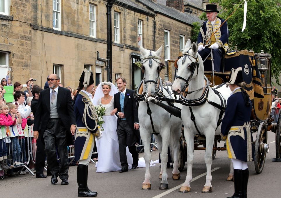 На центральной улице Northumberland. Отец невесты герцог Ральф Перси ведет свою дочь к алтарю.