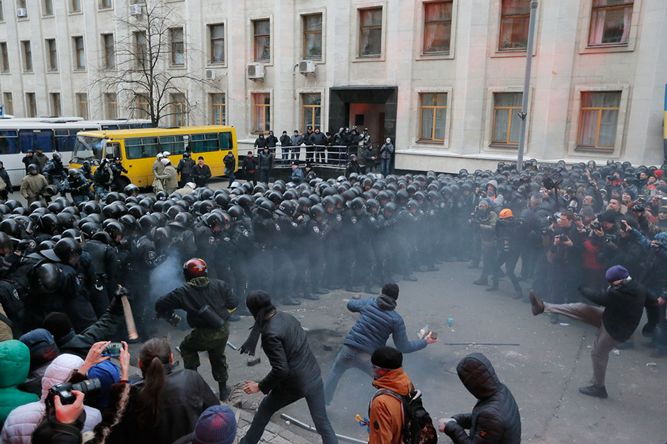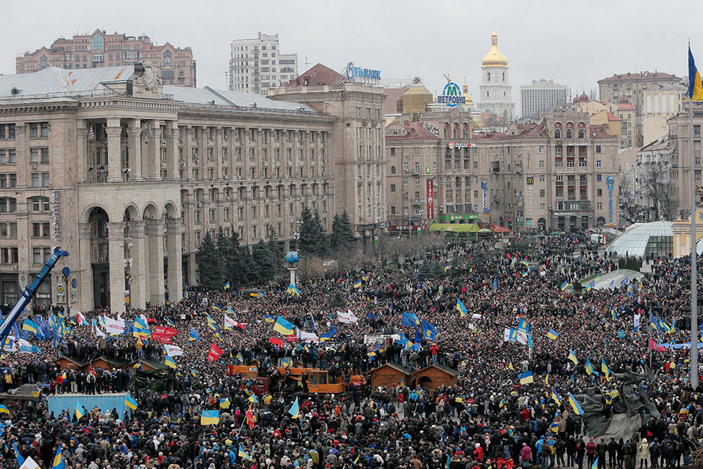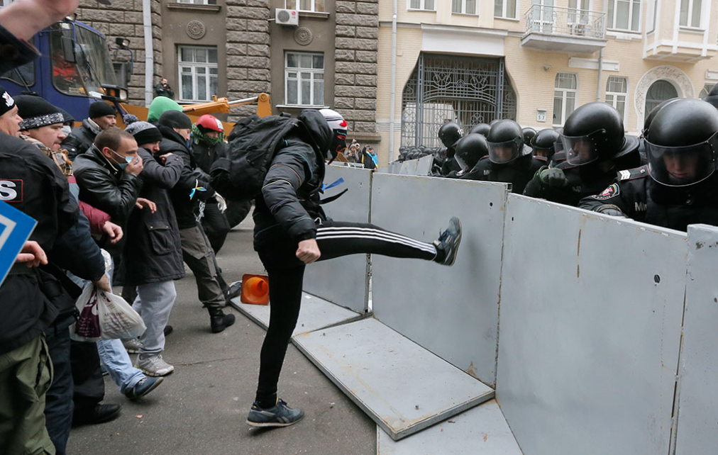Массовые акции сторонников евроинтеграции в Киеве и других регионах Украины начались 21 ноября после объявления правительством о приостановке подготовки соглашения об ассоциации с ЕС, которое планировалось оформить на саммите “Восточного партнерства” в Вильнюсе. В субботу спецназ “Беркут” разогнал “евромайдан” в центре Киева. В воскресенье в Киеве состоялся митинг, в котором приняли участие до полумиллиона человек, закончившийся захватом здания мэрии и массовыми столкновениями протестующих с милицией.
