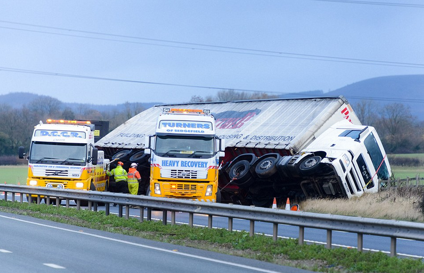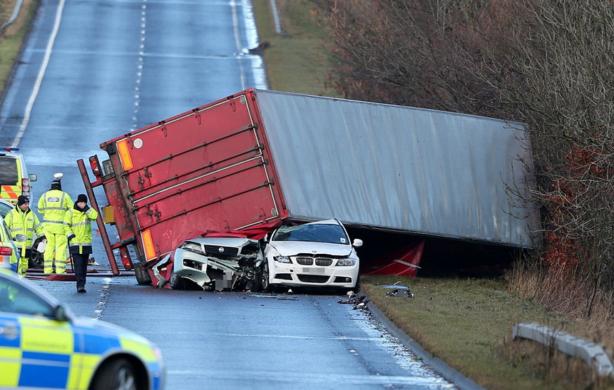 Водитель одного грузовика погиб и четыре человека получили ранения, когда его фуро сдуло ветром на дороге A801 в Западный Лотиан,