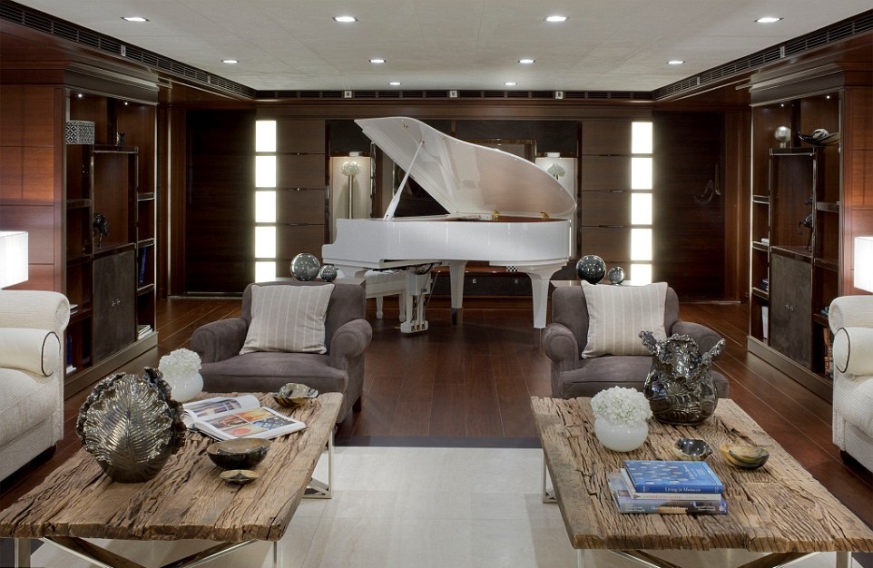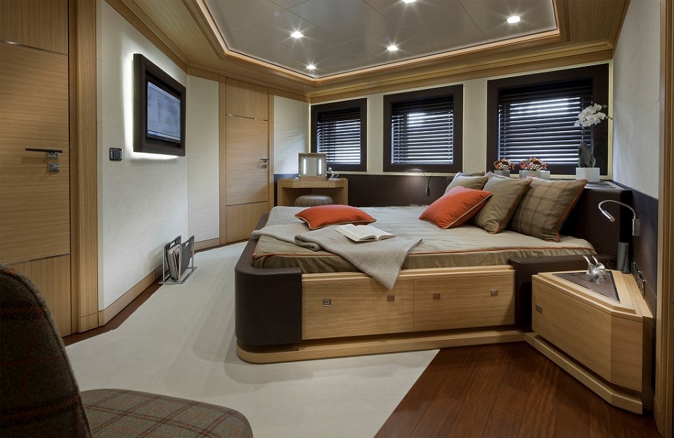 Кабина люкс для владельца яхты, каюты для 13 членов команды, 4 каюты для гостей и зоны отдыха расположены через четыре палубы.