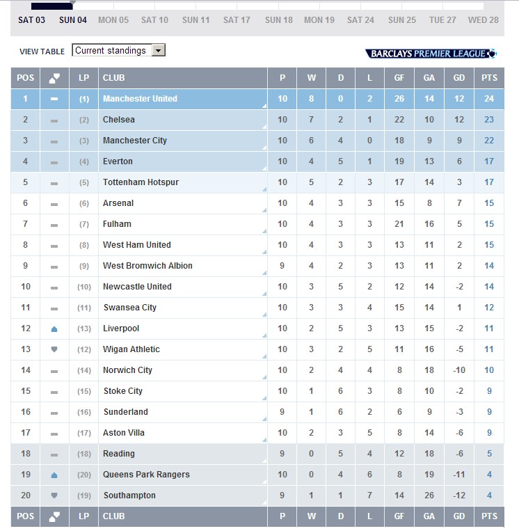 Положение команд на 04.11ю2012