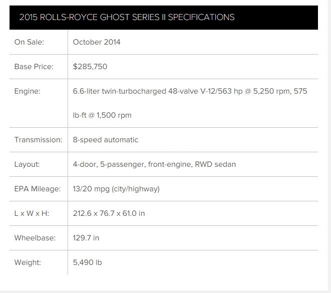В США автомобиль Rolls-Royce модель Ghost Series II в базовой комплектации продается за $285 750 (£187 596).