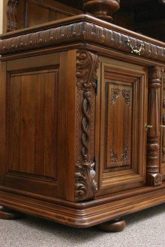 Антикварный стиль, ручная работа, мебель из массива орехового дерева, некоторые горизонтальные части мебели покрыты шпоном, все детали вырезаны исключительно качественно, смотрите фотографии. Пожалуйста, не стесняйтесь, если какой-либо вопросы, звоните 07784945096, Предпочтительно оплата наличными, возможен также банковский перевод, доставка по всей стране, спасибо.