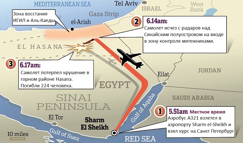 Александр Нерадько, руководитель Федерального агентства авиации России, подтвердил, что самолет распался на большой высоте в отдаленном районе страны, где Египет борется с ИГИЛ и Аль-Каидой.